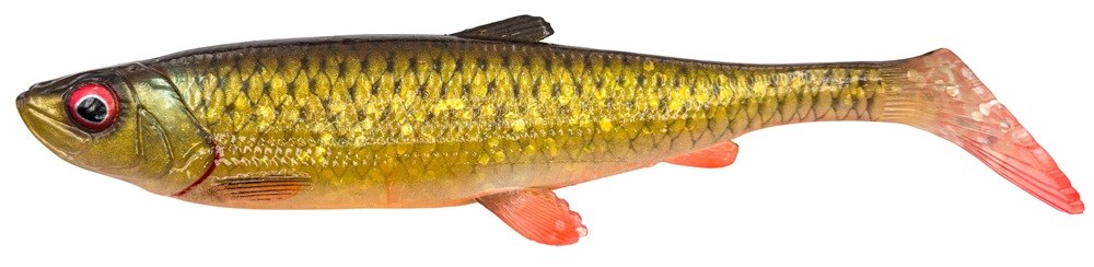 Volné tělo nástrahy s pádlovým ocasem se vyznačuje dokonalými detaily a fantastickou kolébavou a kopavou akcí. Široké ploché boky se při pohybu nástrahy ve vodě třpytí. Velmi realistické tvarované ploutve dodávají velkému pádlovému ocasu skvělou sekundární akci a pro větší přitažlivost je v nich umístěno i hlasité skleněné chrastítko. Vyrobeno ze super měkkého PVC materiálu s úžasnými barvami a vůní vyvolávající záběry. Konstrukce s břišní štěrbinou na připevnění montáže pro dokonalou prezentaci.