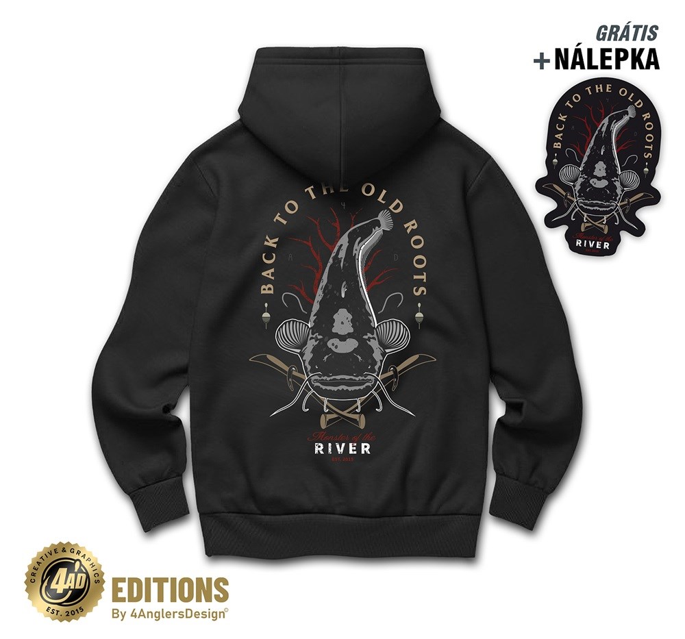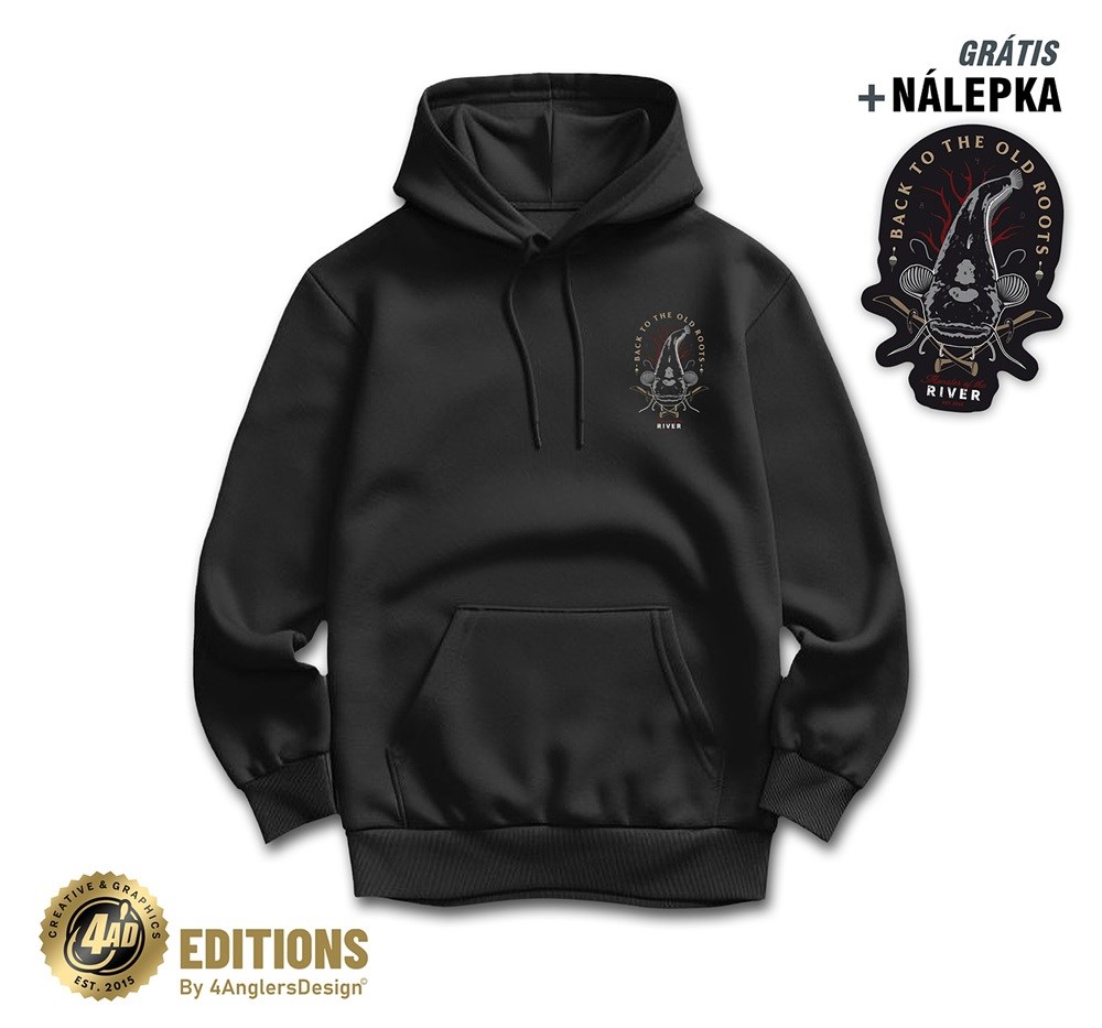 Velký motiv Back to the old roots na zádech a malý motiv vpředu na hrudi.