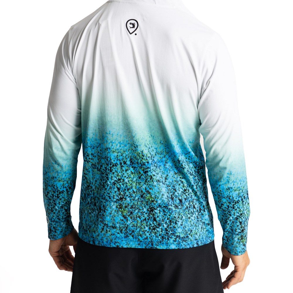 UV tričko Bluefin Trevally (Kranas modroploutvý) s dlouhým rukávem a kapucí.