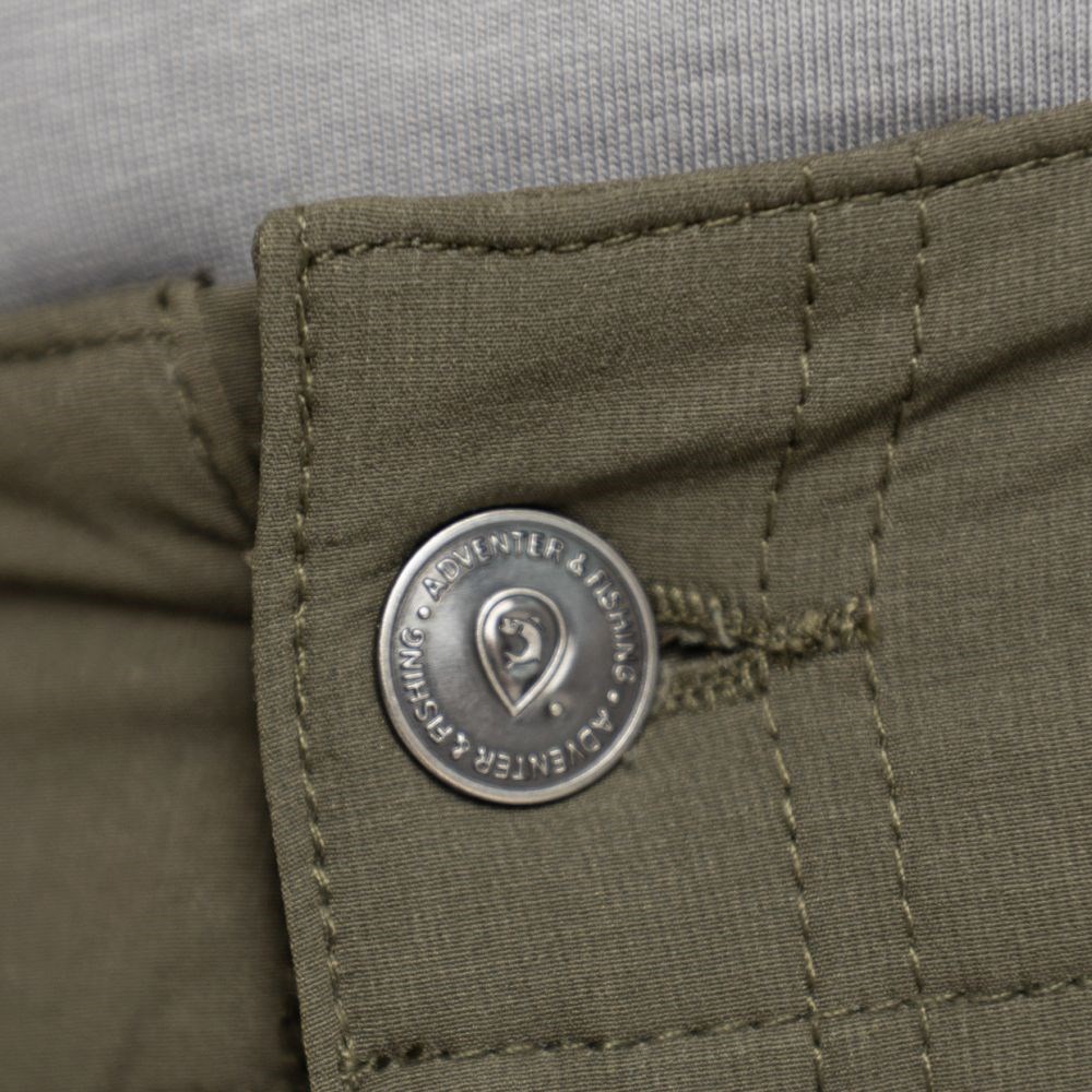 Díky nim zůstanete déle v suchu i při nepříznivém počasí. Anatomicky tvarovaná kolena umožňují neomezený pohyb a rozepínání nohavic ve spodní části vám usnadní obouvání. Kalhoty mají čtyři kapsy, z toho dvě se zipem. Otvor pro pásek umožní upravit pas na požadovanou velikost. sou vybaveny celkem čtyřmi kapsami, po dvou na přední a zadní straně kalhot. Knoflík je ozdoben nápisem Adventer & fishing. Náhradní knoflík je součástí balení.