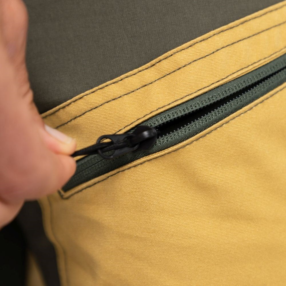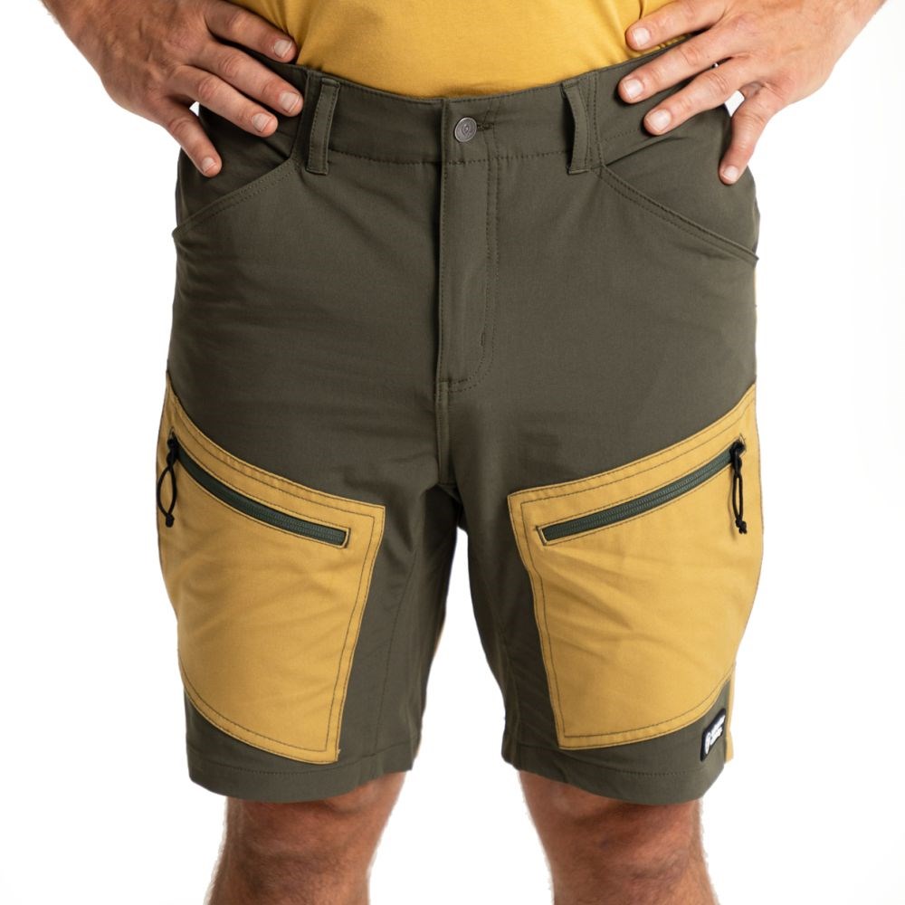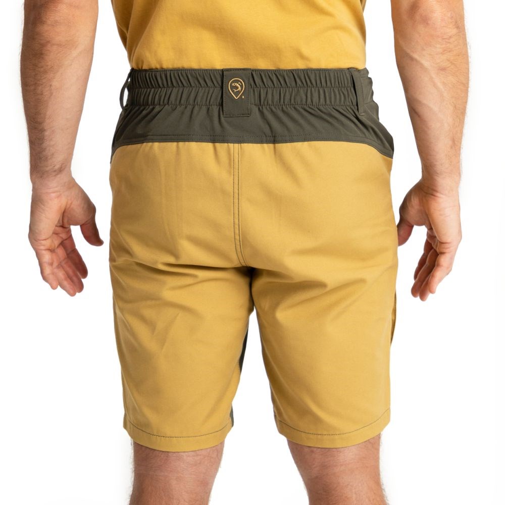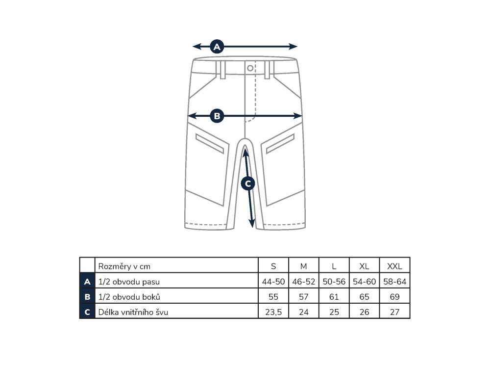 Jsou vyrobené z měkkého, jemného, poddajného a pružného materiálu, který zajistí neomezný pohyb, ať už jste na rybách nebo kdekoliv jinde. Otvor pro pásek umožní upravit pas na požadovanou velikost. Jsou vybaveny celkem čtyřmi kapsami, po dvou na přední a zadní straně šortek. Knoflík je ozdoben nápisem Adventer & fishing. Náhradní knoflík je součástí balení.