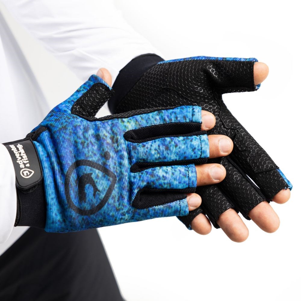 Nezbytný doplněk každého rybáře, zejména při lovu na moři. Rukavice jsou z pružného materiálu s ochrannou vrstvou proti slané vodě a protiskluzovým vyztužením na dlaních. Praktické zapínání na suchý zip na hřbetech rukou vám ulehčí jejich nasazení. Tato varianta rukavic má otevřené konečky prstů pro jejich maximální manévrovatelnost.
