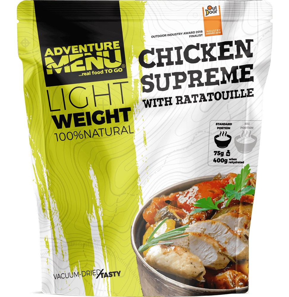 Co ale můžeš čekat je skvělá chuť čerstvé zeleniny vařené v páře spolu s rajčatovým protlakem a směsí koření. Kuřecí prsa naložená den, potom pečená vcelku a nakonec krájená na tenké plátky. Perfektní lehké jídlo klidně uprostřed dne před dalšími výkony.