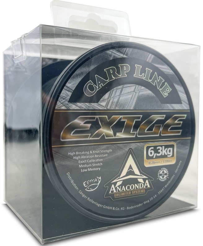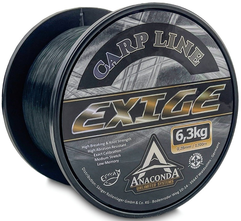Exige Carp Line je ideální vlasec na extrémně dlouhý odhoz. Jeho skvělé odhozové vlastnosti jsou založeny na minimální průtažnosti a velmi snadném odvíjení z cívky. Navíc je vlasec nadprůměrně odolný proti oděru a má vysokou nosnost v uzlu. Samozřejmostí je přesný údaj o průměru i nosnosti, který si mnoho značek nereálně upravuje. Díky obzvláště hladkému povrchu klouže vlasec očky téměř bez tření. Inovativní barva (mořské řasy) na navijáku jednoznačně zaujme.