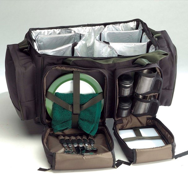 Prostorná jídelní rybářská taška nabízející dostatek prostoru pro potraviny. Vnitřek tvoří speciální tepelná izolační výplň, která zajišťuje uchování potravin v čerstvém stavu. Přepážky v rybářské tašce mají suchý zip a lze je libovolně měnit. Obsahuje 2 talíře a příbory, 2 x 2 ubrousky, 1nůž s umělohmotnou deskou na řezání, 1 slánka, 1 pepřenka, 2 termošálky, 2 šálky, 2 kávové lžičky a 1 utěrka. Rybářská taška Anaconda je vyrobena z voděodolného polyesteru 600D.
