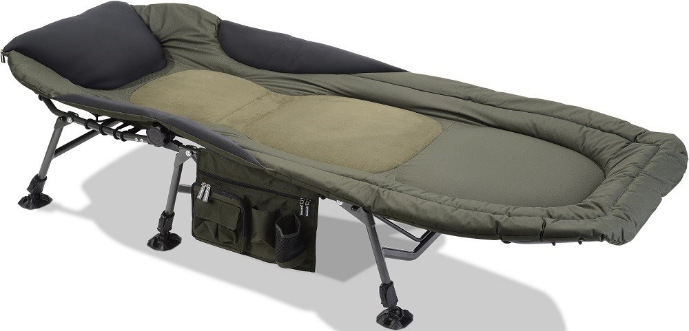 Ložná plocha je 205 x 85 cm a je vyrobena z 600D vodě odpudivého polyesteru, neoprenový polštář má vyjímatelnou vložku a celé lehátko je silně polstrováno. Boční polstrování zajistí příjemný komfort při spaní. Povrch tvoří vodu odpudivý materiál Alcantara, což je zároveň tepelná izolace a ochrana před vlhkostí.