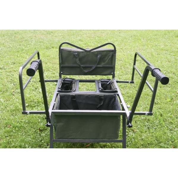 Převážet můžeme až 75kg materiálu najednou. Boční zábrany drží náklad na svém místě. Na přední zábraně je umístěna praktická kapsa o rozměrech 60 x 15 x 25 cm, na spodní části vozíku je velká kapsa o rozměrech 50 x 32 x 25 cm a dvě kapsy malé o rozměrech 35 x 14 x 23 cm. Nohy jsou zakončeny koncovkami proti zaboření. Vozík je stabilní a dobře se s ním manévruje.