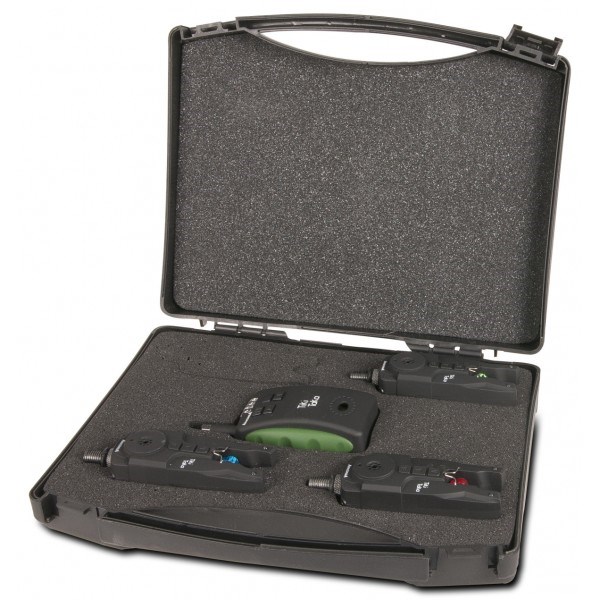 Nabízí všechny funkce, které moderní rybář vyžaduje, jednoduché ovládání pomocí tlačítek, extrémní odolnost, nové metody zpracování a použitý materiál řadí tento výrobek mezi nejlepší a nejspolehlivější hlásiče na současném trhu. Mimořádně robustní kryt je chráněn proti stříkající vodě speciálním nátěrem a je odolný proti otřesům.Samozřejmostí je, 2,5 mm konektor pro připojení běžných swinger systémů. Každý hlásič je programovánsamostatně a odlišně, takže může na jedné vodě i na krátku vzdálenost pracovat několik setů pohromadě, aniž by docházelo k míchání signálu nebo výpadku systému. Sada je dodávána v praktickém kufru, který je připůsoben tak, aby bylo naše drahocené vybavení dokonale chráněné při přepravě a zajišťuje maximální bezpečnost.
