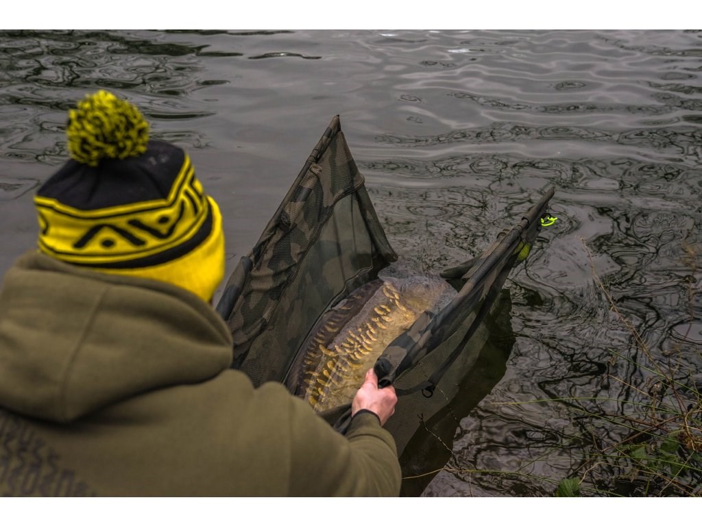 Přechovávací sak Camo Recovery Sling byl navržen a vytvořen s důrazem na šetrnost a bezpečnost pro ryby.