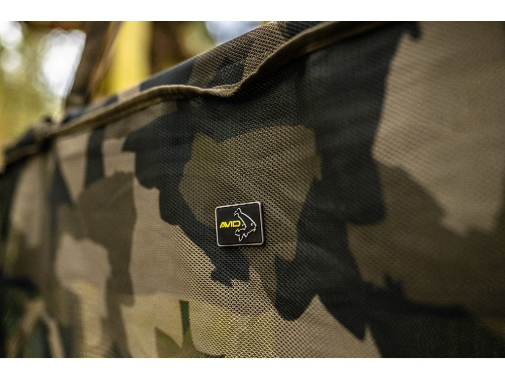 Na sak je použita velice jemná síťovina, přes kterou velmi dobře proudí voda, což úlovku poskytuje skvělé podmínky, aby po boji nabral sílu a mohl se bez stresu a bezpečně vrátit do hlubin. Nový design v Avid Camo vzoru nejen že vypadá stylově, ale materiál je především lehký, rychleschnoucí a odolný. Provázek na uvázaní je ve fluoro žluté barvě, je na něm žlutý plovák a na konci provázku je šroub, který pasuje do rybářské vidličky. Sak se směrem dolů zužuje, což zajišťuje, že ryby v něm zůstanou vždy v přirozením poloze a nijak se nepřetáčí třeba na bok. Přirozená poloha je důležitá pro jejich rekonvalescenci po souboji. Na mnoho anglických vodách je zakázáno nosit k vodě přechovávácí saky, protože se tam nesmí sakovat. Takže jsou dovoleny pouze vážicí saky. Proto je náš Recovery sling vybaven 4 odnímatelnými plováky, které když jsou oddělané, tak se ze saku stává právě vážící sak. Rybáři tak nemusí vlastnit dva saky, ale vše zvládne náš Recovery sling. Sak je dodáván s vodotěsným obalem, který nejen že brání vytékání vody během přepravy, ale také zadržuje nepříjemný zápach. Camo Recovery Sling je k dispozici ve velikosti Standard a XL