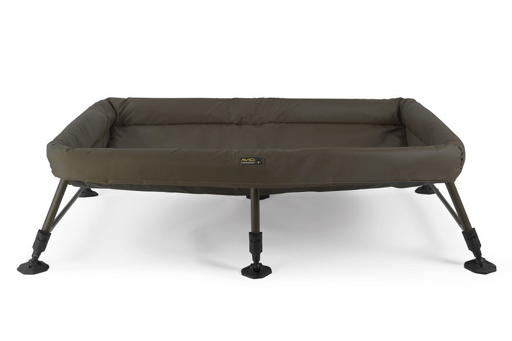 Nyní je to pět let od doby, kdy vyšla první verze podložky Safeguard a stále je tento typ podložky širokou veřejností považován za nejbezpečnější, nejkvalitnější a nejpraktičtější na trhu. Nyní však přišel čas řadu Safeguard trochu zmodernizovat a zdokonalit, za což mohou stálé inovace a pokroky v oblasti nových použitelných materiálů. Stormshield Safeguard podložky jsou nyní vyrobeny z velmi odolného a robustního materiálu Stormshield, který je hodně odlišný od ostatních materiálů používaných na jiných podložkách. Stormshield materiál je více stály v čase a zajistí tak trvanlivost podložky po mnohem delší dobu než u jiných konkurenčních podložek. Horní rám je krytý dostatečně silnou vrstvou materiálu, tak aby bylo zajištěno, že se o rám nemůže ryba při manipulaci poranit, například během vážení nebo focení. Konstrukce je z lehkého hliníku v khaki zelené barvě a všechny nohy jsou výškově nastavitelné pomocí našeho systému Rock-Steady Leg Systém, což zaručuje rychlejší a jednodušší vyrovnání podložky i na nerovném povrchu. Na obou stranách podložky jsou mřížkované otvory pro odtok vody. Podložka Stormshield Safeguard je dostupná ve dvou velikostech.
