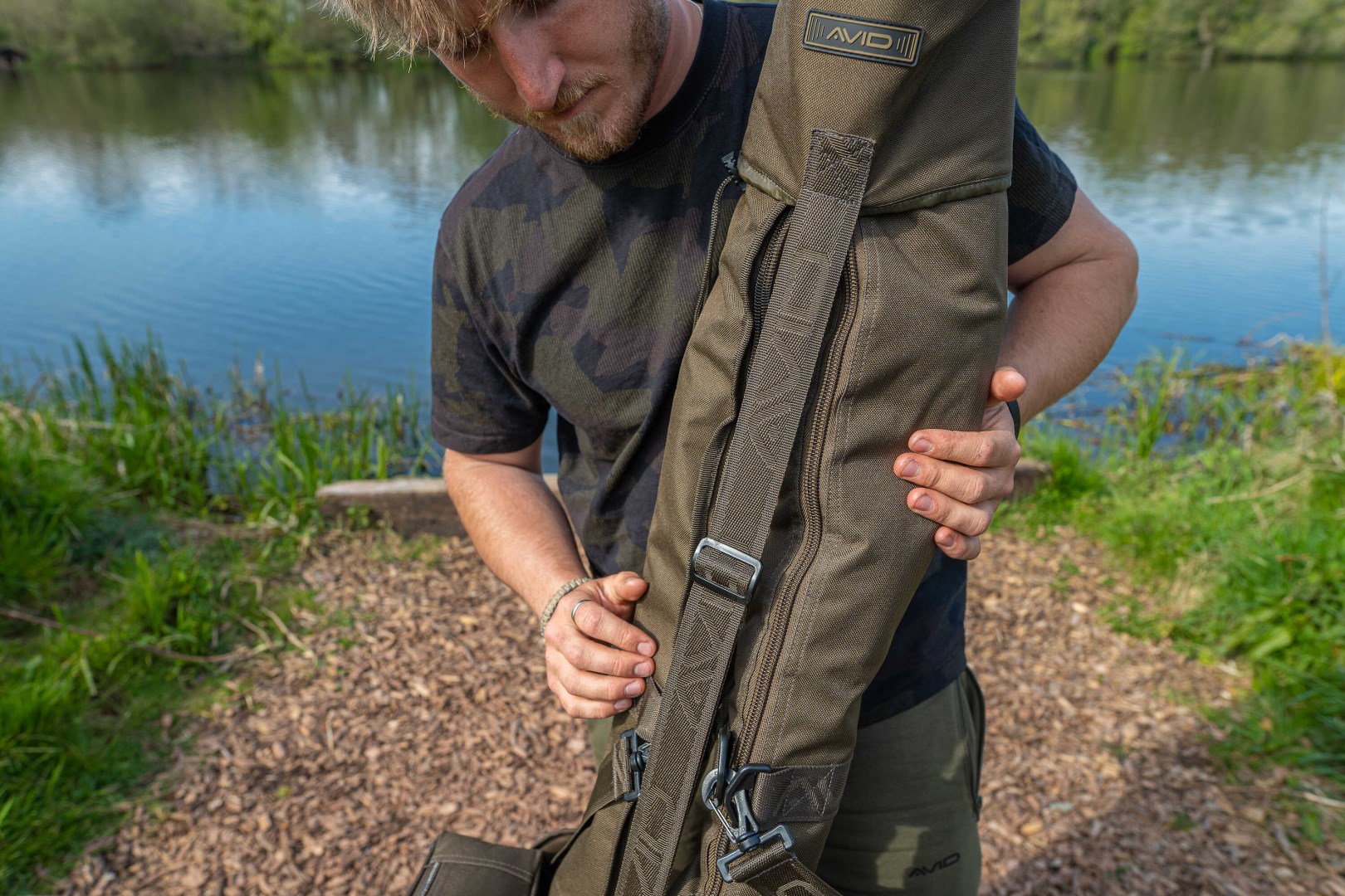 Dny, kdy vám padaly jednotlivé obaly na pruty z vozíku, nebo byl komplikovaný transport více kusů jednodílných obalů, jsou pryč. Compound Rod Sleeve Transporter umožňuje snadno spojovat několik single, nebo double pouzder na pruty, a to rychle a jednoduše dle potřebné situace. Koncové toulce a spojovací pás na zafixování pouzder k sobě jsou velmi robustní, ale přitom plně nastavitelné a lehké. Transporter jednoduše pojme 10 i 12ft pouzdra. Jednoduše se do Transporteru zasunou až 4 pouzdra a utáhnou stahovací šňůrkou, tím jsou pruty připraveny k přepravě.