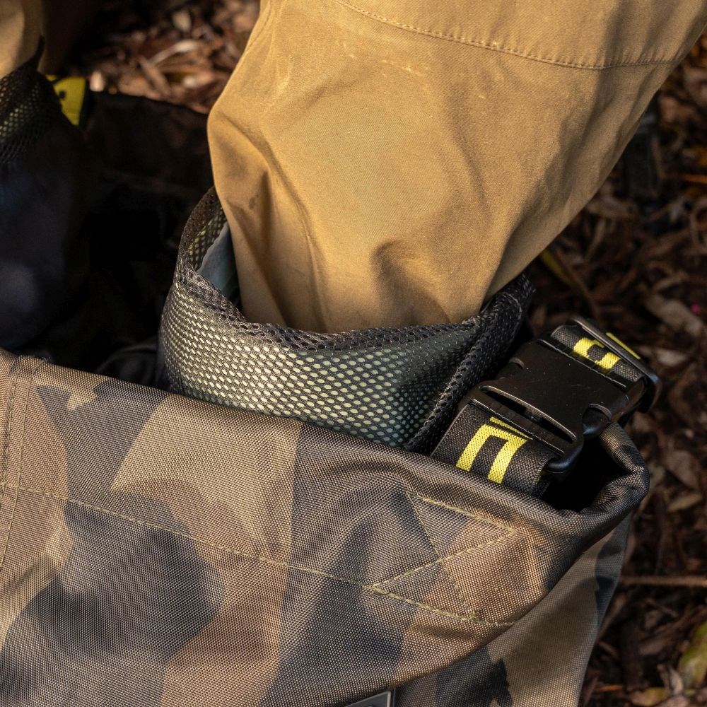 Vyrobeno z lehké, ale odolné tkaniny 420D Distortion Dark-Camo s plně podlepenými švy pro kompletní nepromokavou ochranu.