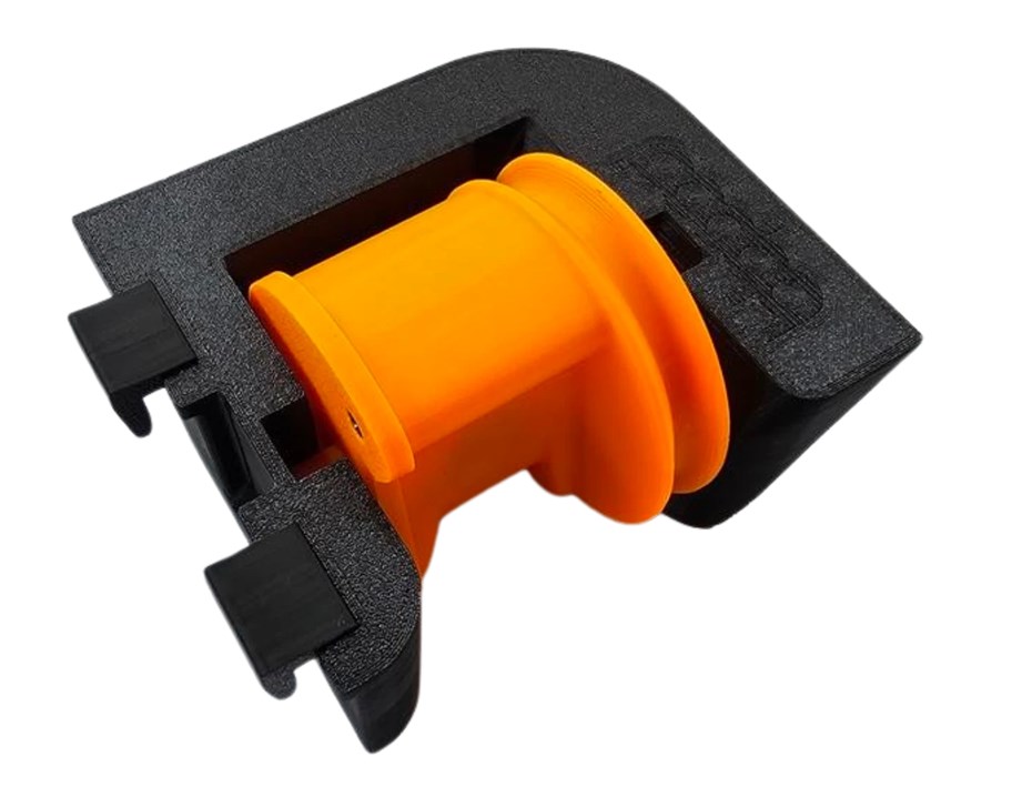 K dispozici je odnímatelná plastová cívka s magnetem, která bezpečně drží háček s pěnou nebo pop-up vlascem a vlasec lze snadno navinout na cívku.