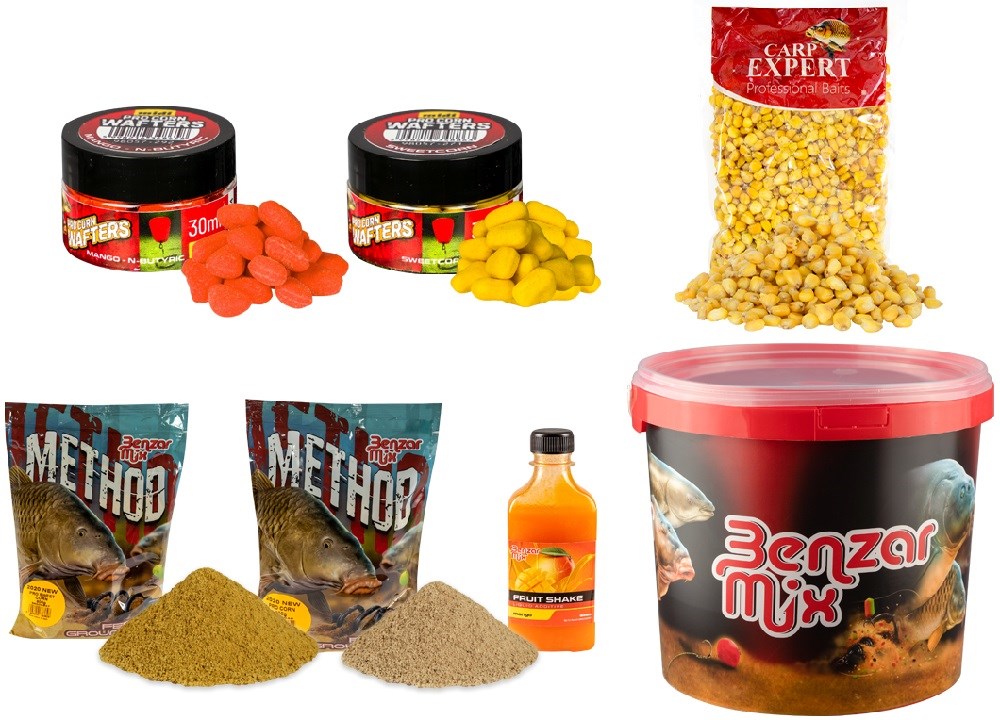 Sada je určená pro lov kaprů s žebrovaným krmítkem. Vařená kukuřice slouží k obohacení krmiva, aroma skvěle podtrhne atraktivitu návnady a krmítková směs je založena na kukuřičném základu.