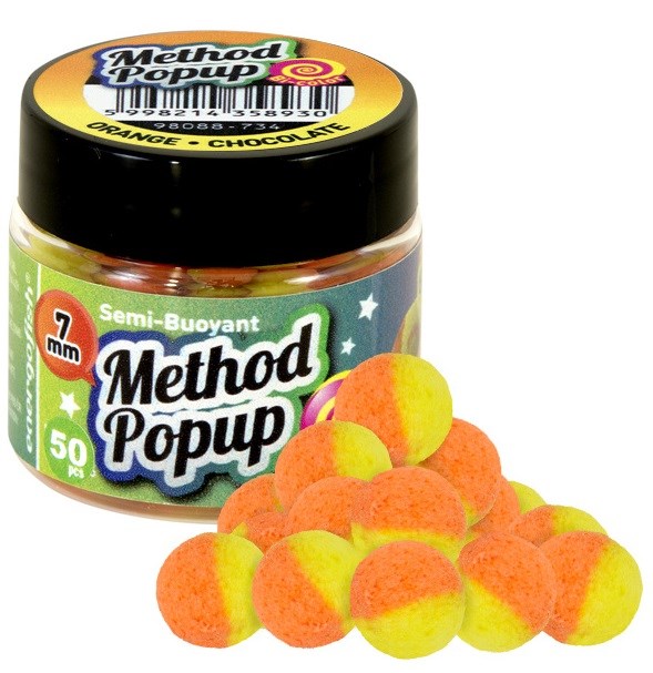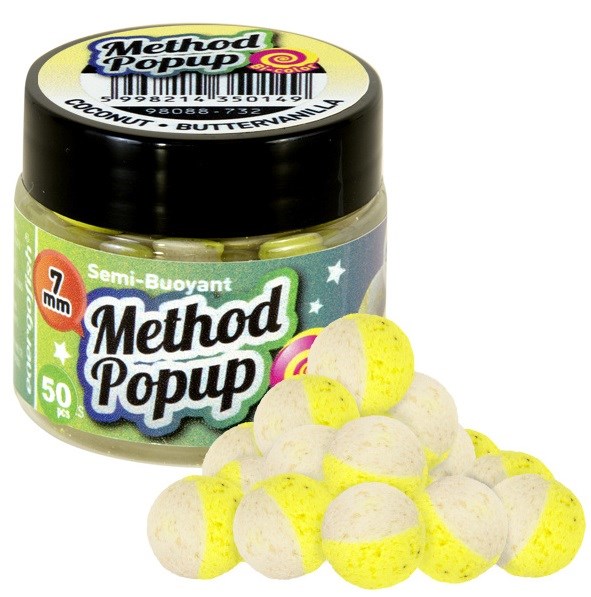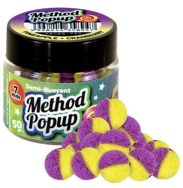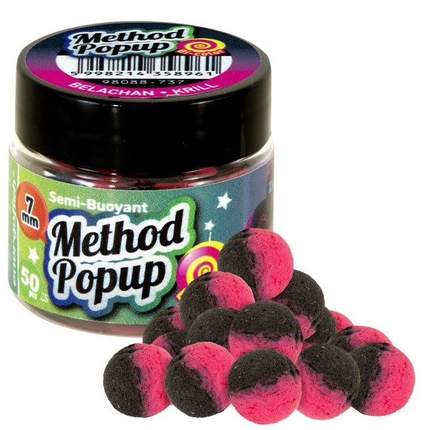 Vynikající plovoucí schopnosti, které dokáží zvednout i ten největší háček ze dna! BICOLOR METHOD POP-UP se stane favoritem mnoha rybářů, protože je snadno použitelný a kvůli své jedinečnosti je kapři nedokáží ignorovat. Malá velikost a ideální plovoucí schopnosti způsobují, že metoda Pop-up je perfektní návnadou pro milovníky intenzivně prochytávaných jezer, aby se zajistila nepatrná, ale rozhodující výhoda před ostatními nástrahami v okolí. Můžete si vybrat z několika dvou barevných příchutích, které mohou být používány během celého roku.