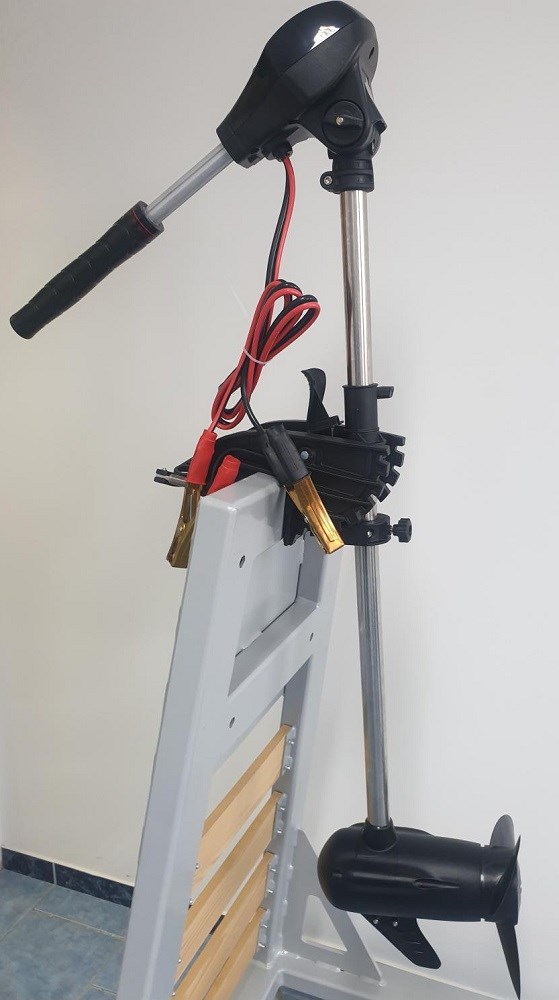 Elektromotor je odolný i do slané vody. Na motoru je ukazatel stavu baterie. Rukojeť motoru je odolná a sklopná, díky tomu nepotřebujete tolik místa například v kufru auta, také lze nastavit optimální úhel. Noha motoru v držáku je posuvná nahoru a dolů, díky tomu lze dát na jakoukoliv loď a "vyladit" nejlepší účinnost motoru.
