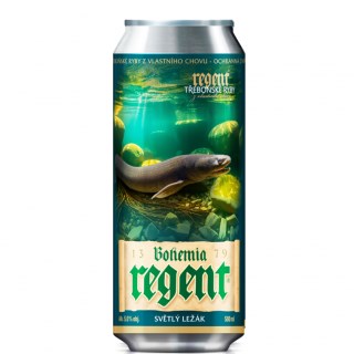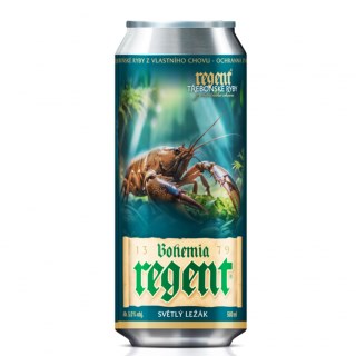 Dárkový karton Regent – Třeboňské ryby 2. ČÁST obsahuje plechovky s motivy ryb: Okoun říční, Pstruh potoční, Karas obecný, Rak říční, Lín obecný, Úhoř Říční.