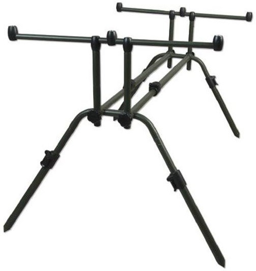 Podélně nastavitelná dvojice středových tyčí a naklápěcích nohou, plně nastavitelná výška a délka. V přepravní brašně.