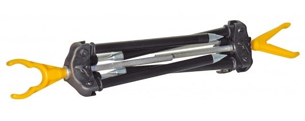 Rozložení a složení stojánku jedním pohybem, minimální přepravní velikost. Výškově stavitelná přední i zadní rohatinka v rozmezí 20 - 25cm. Nastavitelná rozteč rohatinek v rozsahu10 - 35 cm.