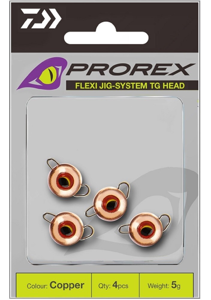 Díky flexibilnímu upevnění háčku má použitá nástraha neporovnatelnou naklánějící se akci, když se dostane na dno. Tento pohyb je velmi lákavý hlavně pro candáty a okouny. V závislosti na váze a velikosti tungstenové hlavičky se tento systém hodí pro nástrahy v délce 3-10 cm. 3D očka dodávají hlavičce velkou atraktivitu pro lovící rybu. Prorex TG Flex Jig Heads jsou vyrobené z čistého tungstenu, a tak jsou mnohem těžší, než běžné hlavičky vyrobené z olova. Díky tomu můžete rybařit mnohem rafinovaněji a snadněji, než s běžnou jigovou hlavičkou, protože zde je méně odporu při nahazování i prezentaci ve vodě. Hrozba uváznutí je redukována, zatímco citlivost je markantně zvýšena.