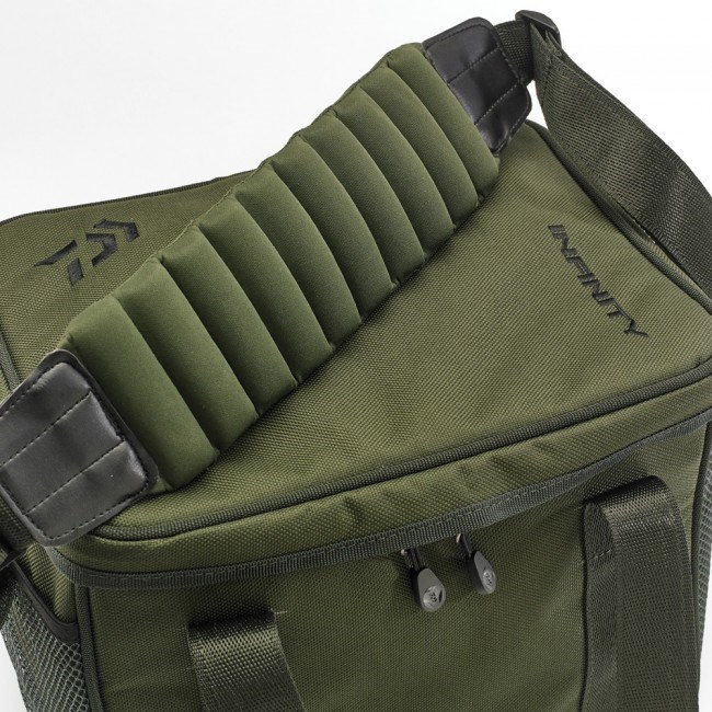 2 velké dělené kapsy a 1 přední kapsa nabízí další prostor pro ukládání Vašich nezbytností jako jsou např. signalizátory. Další, nahoře umístěné dělené kapsy nabízí bezpečné uložení dokumentů. Dno je pogumováno a je tak odolné proti promočení ze spodu. S polstrovaným velkým popruhem a madlem. Materiál: 100% polyester 600D, potažený PVC.