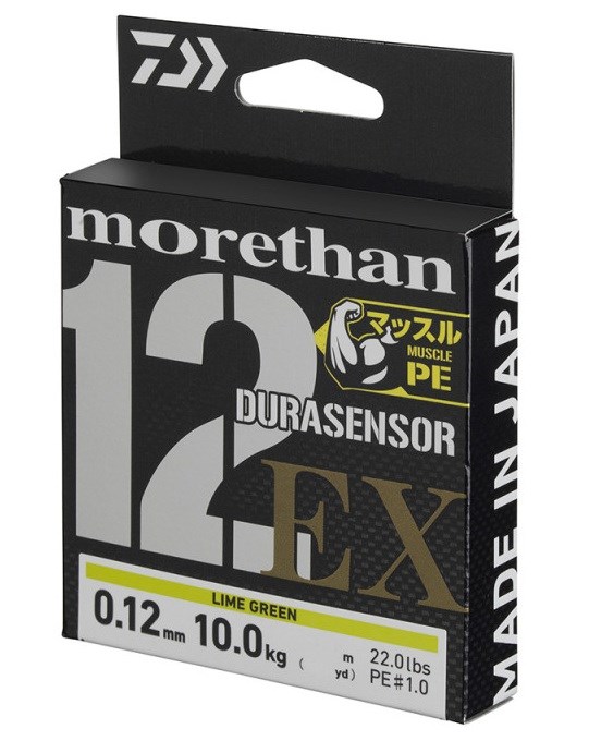Nová 12-pramenná pletená šňůra Morethan nabízí oproti předchozím verzím obrovské vylepšení a zaujme enormní odolností proti oděru, extrémní pevností a prodlouženou vzdáleností při nahazování. Inovativní proces splétání „Muscle PE“ zajišťuje extrémně kulatou a těsnou strukturu, která v porovnání s běžnými 12-pramennými pletenkami neponechává uvnitř téměř žádná prázdná místa a tím výrazně snižuje absorpci vody a vlhkosti do vnitřního prostoru – výrazně se tak zvyšuje odolnost a výkonnost. Použitím nového vlákna „Tough PE“, které je o něco silnější a kulatější než běžná PE vlákna, se pevnost v tahu a zejména odolnost proti oděru zvýšila o více než 50%. Výsledkem je výrazně vyšší odolnost, zejména při lovu v okolí vázek. Nová povrchová úprava „EVO+ Silicone3“ zajišťuje extrémně hladký povrch, který působí téměř jako monofilní vlasec a snižuje tření při nahazování i hlučnost.