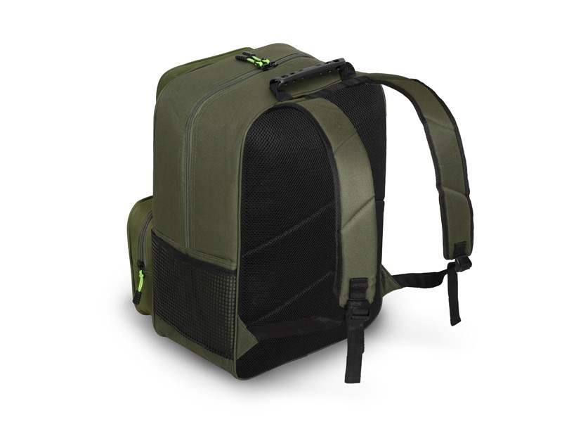 Důmyslně promyšlené rozložení dělí prostor na velkou hlavní komoru a dvě přední kapsy. Hlavní část nabízí dostatek místa pro oblečení i rybářské příslušenství a navíc je vybavena vyztuženou přepážkou.