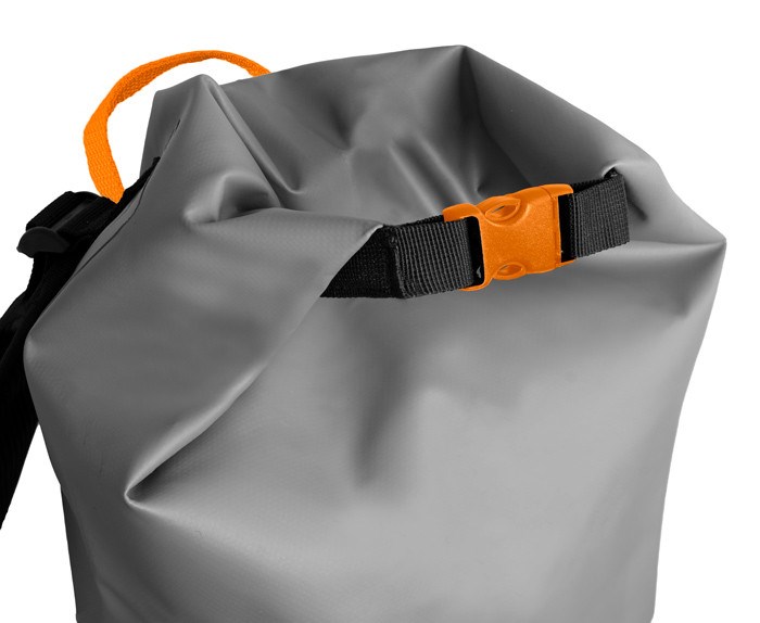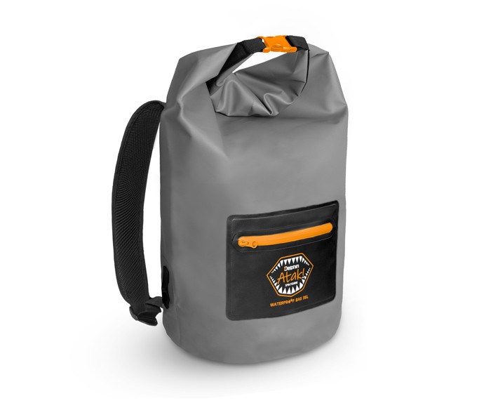Je to praktický batoh jednoduché konstrukce a doplněn o odkládací prostory, aby spolehlivě sloužil a ochránil vaše cenné předměty před vodou a vlhkem. Dostupný je v matné šedé barvě doplněné oranžovými prvky, který je snadno rozpoznatelný, a proto je vhodný kromě rybolovu i na ostatní outdoorové aktivity. Má polstrované ramenní popruhy a zádovou část s logem Delphin černé barvy a doplněn je o praktické ucho oranžové barvy na nošení v ruce. Vpředu se nachází vodotěsná kapsa s oranžovým zipem a na boku najdeme držák na láhev. Uzavírání vrchní části je možné pomocí rolovacího zapínání s 1 přezkou oranžové barvy. Vnitřní prostor je doplněn o jednu kapsu na drobnosti. Jeho objem je 35l.