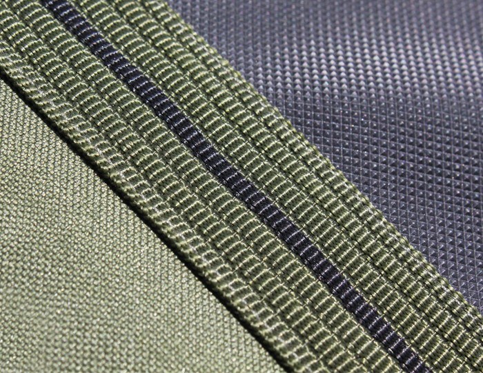 Model má po straně extra dlouhou kapsu se zipem, která slouží například pro transport rybářského podběráku. Na něm jsou našity uložení na vidličky i se stahovací páskou. Toto pouzdro tak pojme většinu těžko skladného rybářského náčiní.