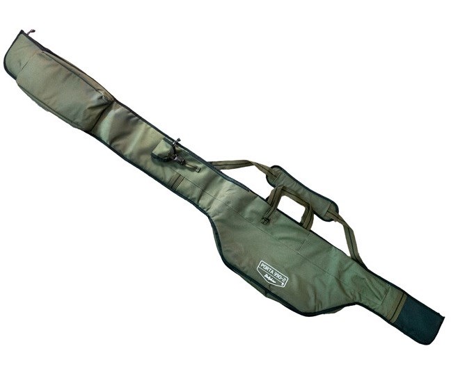 Toto pouzdro určené pro 2 kompletní dvoudílné pruty délky 390cm se dvěma navijáky je kompletně projektováno designéry značky Delphin. Pouzdro je plně polstrované s 6mm vystýlkou na každé stěně, včetně dělicí stěny. Tím pádem nehrozí při transportu 2 prutů jejich vzájemné poškození. Obě vnitřní komory na pruty jsou fixovatelné pomocí suchého zipu na jejich vrchu. Při navrhování pouzder jsme mysleli na uložení největších navijáků a dovolíme si tvrdit, že je sem možné uložit 99,9% běžně používaných kaprařských sestav, včetně těch s očky velikosti 50mm!