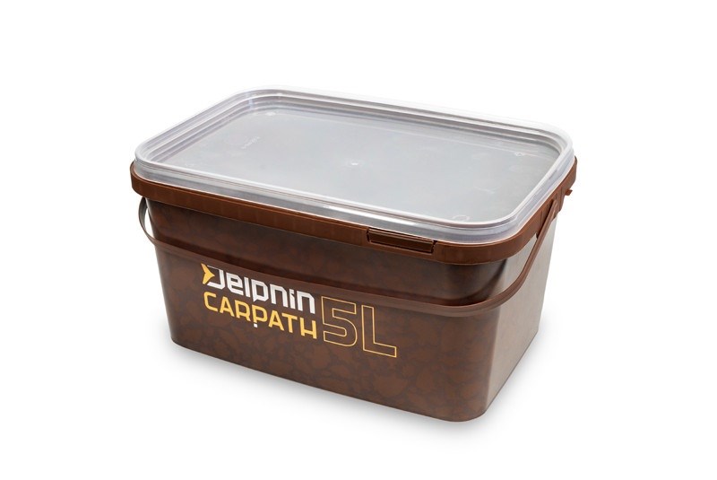 Dodávané je v tmavě hnědé barvě s potiskem Carpath kamufláže a označením. Vědro má praktickou sklopnou kovovou rukojeť s plastovým úchopem pro lepší manipulaci. Součástí kbelíku je i plastový poklop stejné barvy, který zajistí obsah v případě převrácení a chrání směs před vyschnutím.