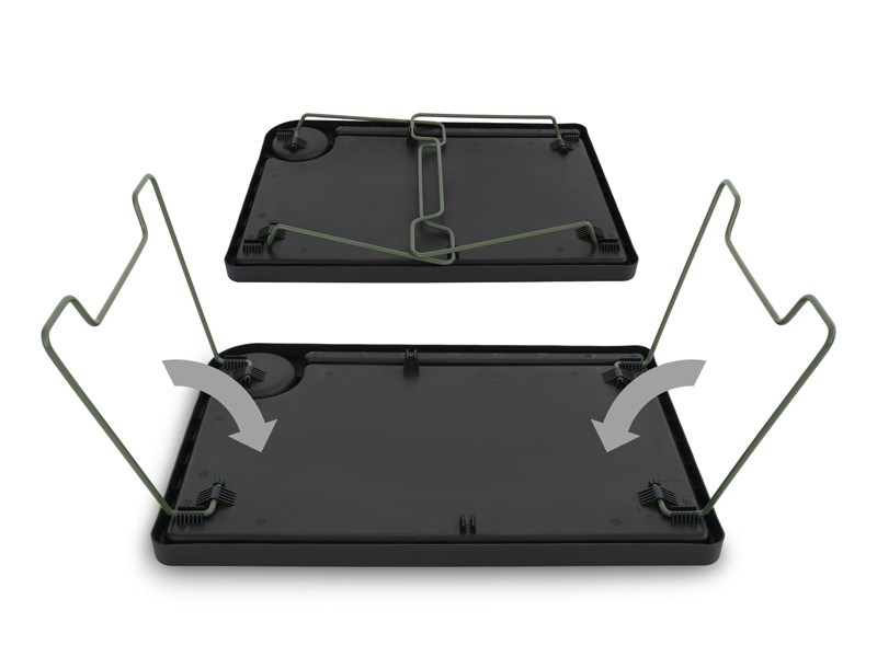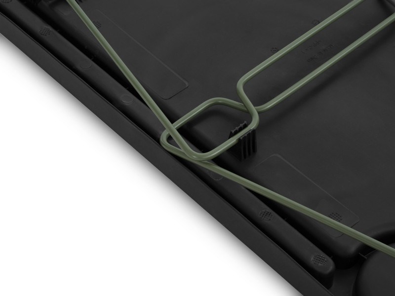 Stolek disponuje sklápětelnýma nohama, díky čemuž po jejich složení nabývá velmi kompaktní transportní rozměry. Praktické úchyty na spodní straně desky zabezpečují fixaci nohou v rozloženém i složeném stavu, čímž předcházejí jejich nechtěnému pohybu během manipulace nebo přepravy.