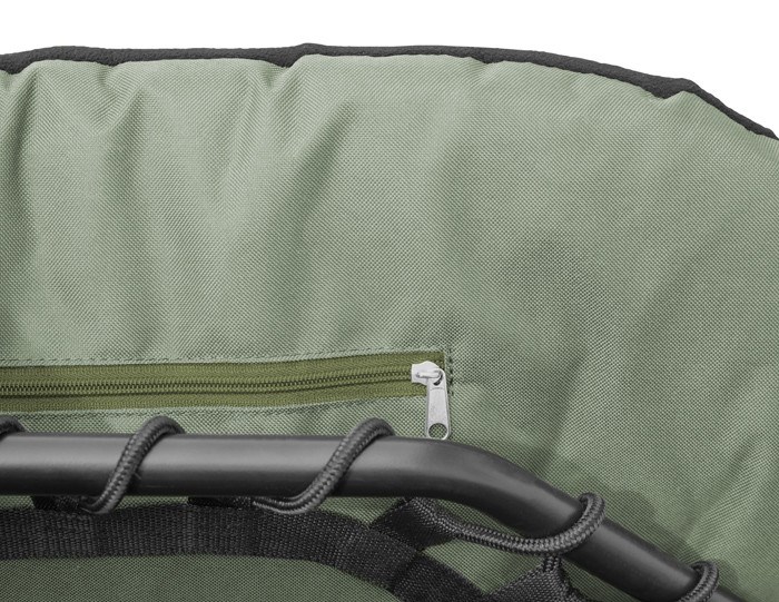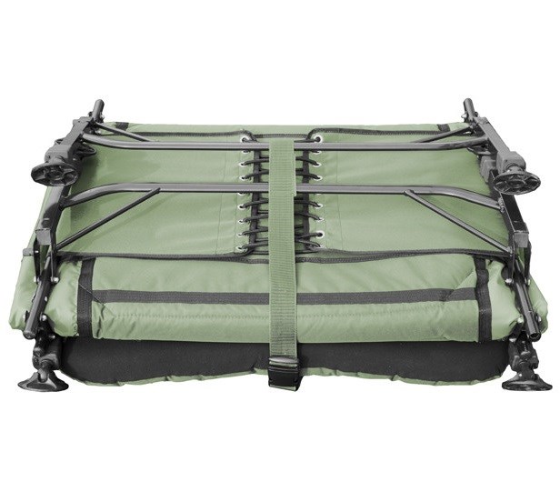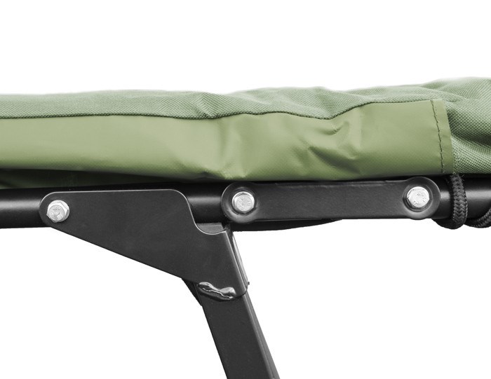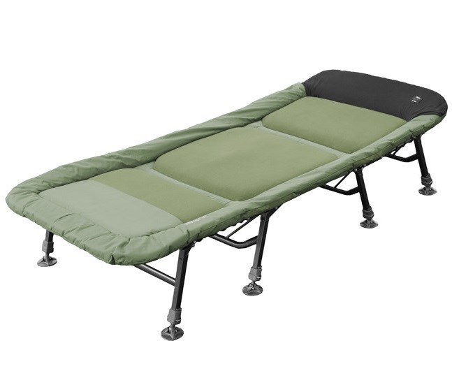 Velkorysý rozměr matrace až 210x90cm nabízí skutečný odpočinek na rybách či v kempu. O pohodlí matrace se starají 3 měkké fleecové panely barvy khaki v kombinaci se zelenou látkou 600D. Hlavová část je tvořena kombinací černého a khaki fleecu. Ve spodní části se nachází speciální omyvatelný materiál. Pokud lehátko v této části umažete zablácenými botami, vodou a kartáčkem ho jednoduše vyčistíte. Tvrdost matrace je možné měnit v hlavové, nožní i středové části, a to pomocí pevných provazů, které se časem nenatáhnou. Každý jeden pár nohou je zamykatelný bajonetovým pinem, takže nehrozí nechtěné překlopení a otravné sklápění nohou při posouvání je minulostí. Vnitřní dva páry nohou mají zesílenou konstrukci. Dosedací patky nohou jsou flexibilní a robustní, umožňují přizpůsobení jakémukoliv nerovnému terénu. Výška lehátka je 40cm, po vysunutí teleskopických nohou až 47cm! Takto vysoké lehátko nabízí extrémní komfort při ulehnutí. Matraci ze spodní části nad kloubovými mechanismy chrání zesílená pogumovaná látka. Specialitou je vnitřní zipovatelný prostor pod hlavovou částí. Do něj si můžete vložit drobnosti, které potřebujete mít v noci po ruce. Své místo tam najde příposlech, mobilní telefon, lampa či láhev s vodou. Po složení je lehátko možné zafixovat popruhem s plastovým klipem. Tento popruh je odepínatelný. AP8 FlatLux je detailně zpracované lehátko té nejvyšší kvality.