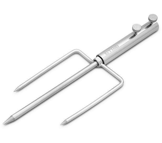 O dokonalou stabilitu se starají tři hroty, jejichž tvar vytváří praktickou plochu pro zatlačení chodidlem – díky ní držák jednoduše zapíchnete i do tvrdého podkladu. Jeden z hrotů je vybaven maticí, což umožňuje nastavení jeho polohy, ale také úplné odnímání. Počet a polohu hrotů lze tedy nastavit podle potřeby, pro co nejpreciznější zafixování držáku v zemi.