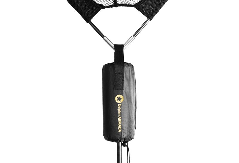 Za špičkovou rukojetí nezaostává ani hlava podběráku. Ramena jsou pevná a v jejich spodní části opět dominuje přesná strojařská práce Konektory ramen mají totiž sražené hrany pro ještě jednodušší spojení hlavy s rukojetí. Samotná sít má velmi jemnou strukturu (5x5mm) a nehrozí tedy žádné poranění úlovku. Pomyslnou třešničkou jsou zesílené tunely síťky pro ramena. Díky tomu nehrozí prodření síťky ani pro letech používání. Podběrák je zabalený v textilním pouzdře a samozřejmostí je i kvalitní plavák. Delphin ARMADA – vstupte do nového levelu!