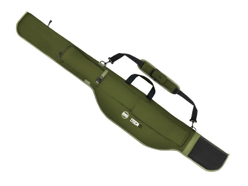 Pouzdro je na všech stěnách včetně předělovací přepážky plně polstrované 6mm měkkou výstelkou. Tím pádem nehrozí při transportu 2 prutů jejich vzájemné poškození. Obě vnitřní komory na pruty jsou fixovatelné pomocí suchého zipu na jejich vrchu.