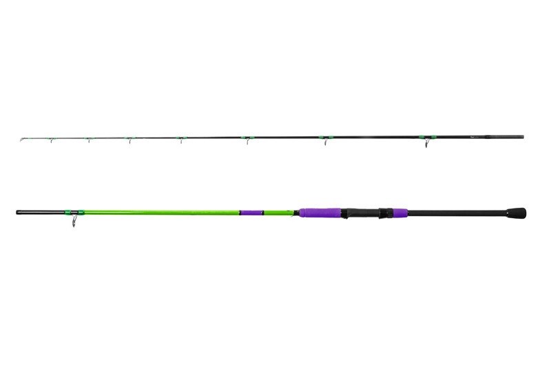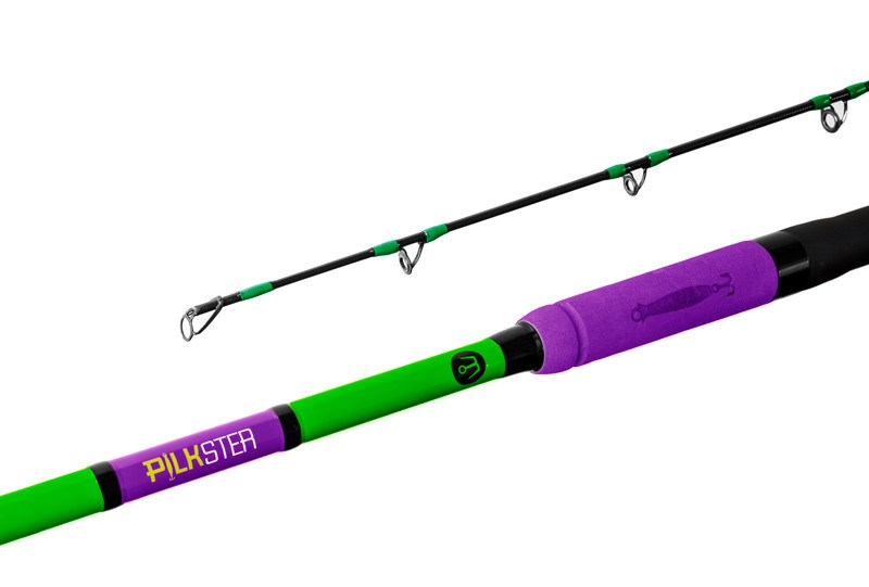 S tímto prutem zdoláte i ty největší kusy. Vyznačuje se dvěma výměnnými špičkami. Jedna je vyrobena z karbonu, která se vyznačuje tvrdší akcí a druhá je vyrobena z laminátu a je jemnější a citlivější. Záleží už jen na vámi zvolené technice, kterou špičku zvolíte. Pruty PILKSTER nabízíme ve dvou délkách 240cm a 270cm ve vrhací gramáži 50-200g. Má ergonomickou rukojeť ve fialové barvě s logem pilkru, která se skvěle drží a doplňuje zelenou a černou barvu blanku. Barvy jsou nakombinované tak, aby byl prut dobře viditelný i v horších povětrnostních podmínkách, které běžně na moři panují.