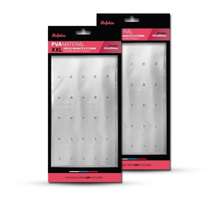 Extra velký, hranatý, vodou rozpustný PVA sáček od slovenské značky Delphin je určen k uložení suché vnadící směsi složené z pelet, boilie, kukuřice, nebo jiného partiklu. Tyto sáčky mají široké využití při lovu ryb, jako jsou například kapři, sumci, amuři, nebo jiných ryb … Připravená návnada zabalená v sáčku se nastraží k chytací nástraze v místě lovu. PVA sáček se po čase přímo úměrném teplotě vody rozpustí a tak uvolní krmnou směs v blízkosti chytací nástrahy, čímž výrazně zvýší její atraktivitu pro lovené ryby. Díky své extra velikosti je možné umístit na krmné místo výrazně větší objem krmiva. Sáčky mají maximální kapacitu až 1,5 kilogramu návnady, což je předurčuje k masivnímu a přesnému zakrmení daného prostoru! To výrazně zvýší vaše šance na přilákání kapitální úlovku!