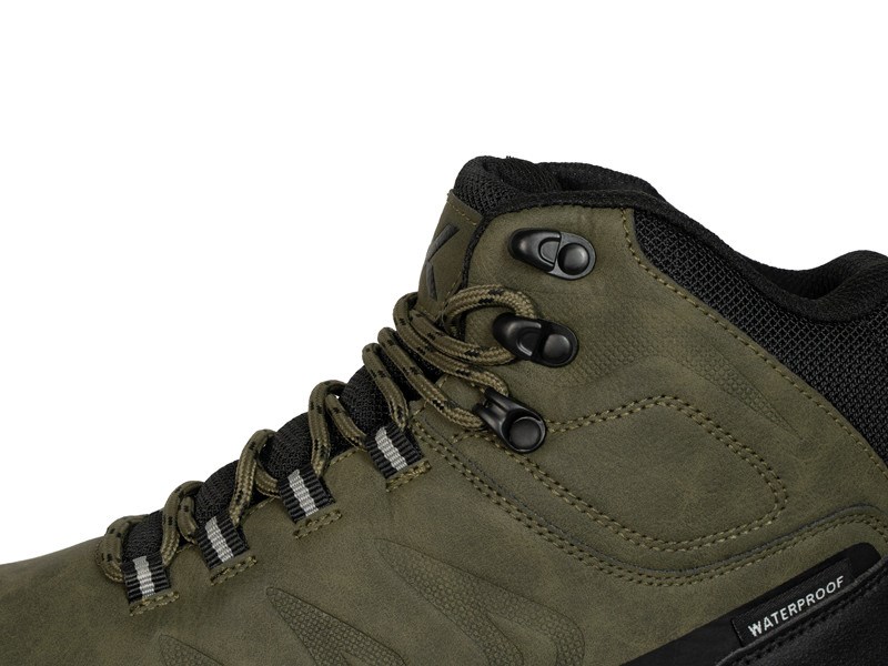 Vrchní část boty je vyrobena z kombinace odolných syntetických materiálů a textilie, které poskytují chodidlu potřebnou oporu a zároveň přispívají k dlouhé životnosti obuvi. Vyšší střih bot pomáhá chránit kotník před podvrknutím, zatímco vyztužená špička a pata zvyšují odolnost boty při používání v náročnějším terénu.