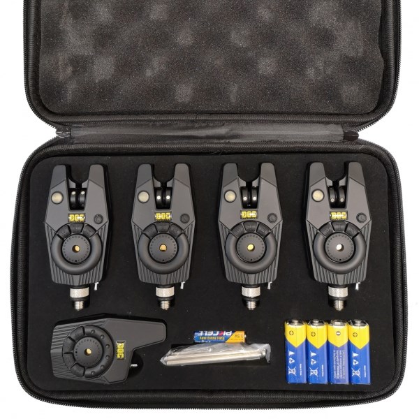Sada obsahuje: 1x kufřík, 4x signalizátor, 1x příposlech, baterie, šňůrka na pověšení příposlechu. Signalizátory se vyznačují dlouhým dosahem – 200-220m. Pracovní teplota -10 až +70°C. Mezi další funkce patří - nastavení citlivosti, hlasitosti, tónů, individuální nastavení barev na signalizátoru, pohotovostní svítilna na příposlechu, paměťová funkce zapnutí a vypnutí signalizátoru, nastavení vibrace na příposlechu, výstup pro svítící swingry, zvukové rozlišení tahu a pádu, možnost prodloužení proti větru, příposlech lze také pověsit na ruku nebo na krk. Jednotlivé signalizátory jsou na příposlechu barevně rozlišeny. Signalizátory i příposlech jsou vyrobeny z velmi kvalitního pevného materiálu, moderního designu černé barvy.