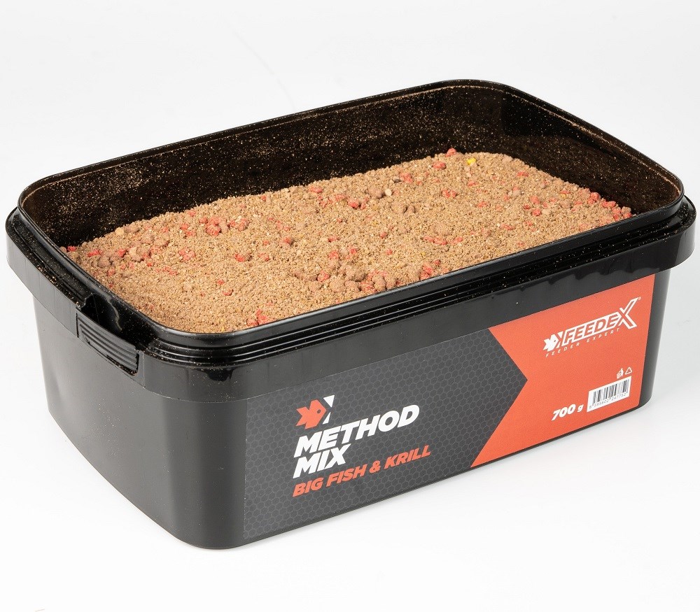 Jsou určené k použití do method feeder krmítek. Jejich složení je přizpůsobeno k lovu kaprů či amurů s pomocí feeder techniky. Big Fish & Krill je špičková závodní směs na větší exempláře ryb, která obsahuje enzymatické rozpustné rybí moučky, GLM extrakt, játrový extrakt, krill a další mořské proteiny. Díky nízkému obsahu tuku se dá použít i v chladné vodě. Mix zvlhčete vodou (můžete přidat i tekuté atraktory), nechejte nasáknout a poté můžete vmáčknout do krmítka. Směs ve vodě okamžitě pracuje, rozpadá se a láká tím ryby k záběru. Feeder Expert - zkráceně FEEDEX - nová hvězda ve světě feederu.
