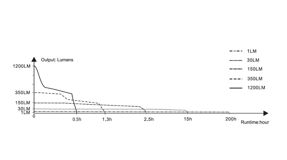 Inteligentní ochrana proti přehřátí - vzhledem k tomu, že svítilna dosahuje vysokého výkonu 1200 lumenů, dochází u ní k narůstu teploty. Pokud teplota překročí 60°C, dojde k automatickému snížení výkonu. Jakmile teplota klesne pod 60°C, je možné opět používat nejvyšší výkon.