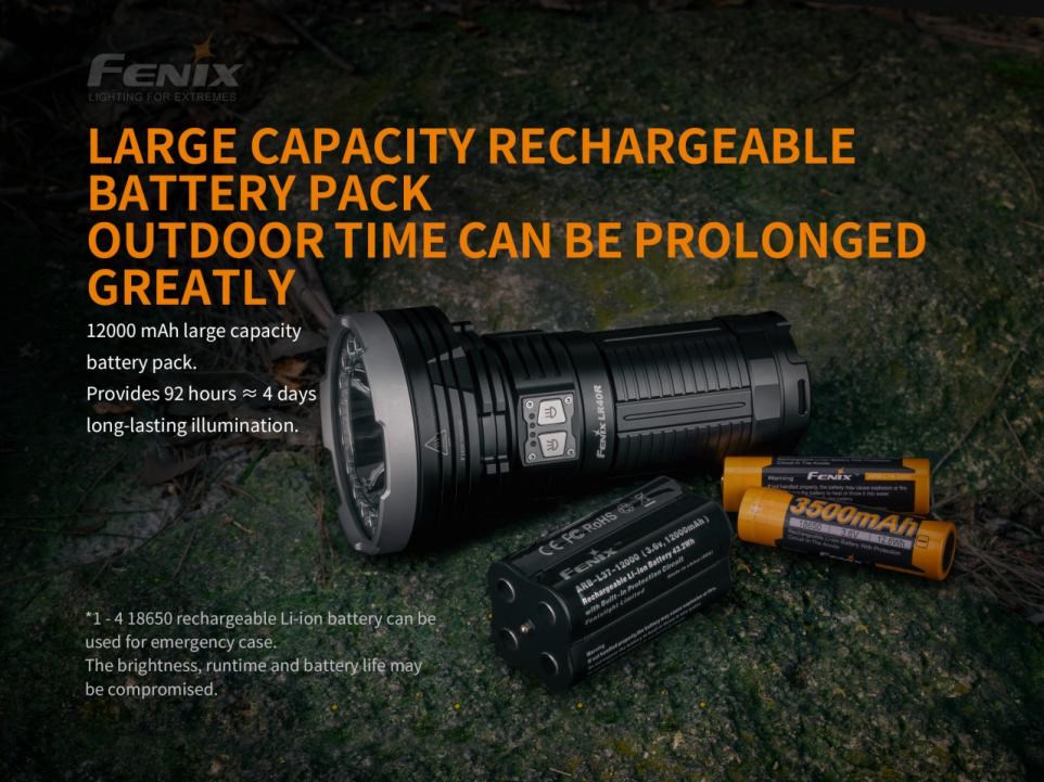 Svítilna je navíc vybavena indikačními LED, které ukazují stav nabití akumulátoru. Navíc je možné svítilnu nouzově použít i jako powerbanku a nabíjet z ní další USB zařízení. I přes obrovský výkon si svítilna uchovává překvapivě kompaktní rozměry, délka činí pouhých 15,4 centimetrů a hmotnost je 698 gramů včetně akumulátoru. Tato vyhledávací svítilna je vhodná například pro ostrahu velkých areálů, služební použití či průzkumné a záchranné operace a pro všechny nadšence do svítilen.