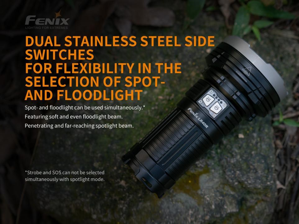 Podržením pravého tlačítka po dobu cca půl vteřiny se zapne dálkový kužel světla, podržením levého tlačítka se aktivuje široký kužel, oba kužely mohou svítit i zároveň. Krátkými stisky jednotlivých tlačítek se cyklicky přepínají výkonové režimy příslušných reflektorů. Stroboskop se zapne podržením levého tlačítka po dobu alespoň 1,2 vteřiny (lze i při vypnuté svítilně), dalším krátkým stiskem se přepne na SOS a následným stiskem se vrátíte do stálého svícení. Půl vteřinovým podržením jednoho z tlačítek se vypne příslušný kužel. Podržením pravého tlačítka po dobu 1,2 vteřiny se vypnou oba kužely.