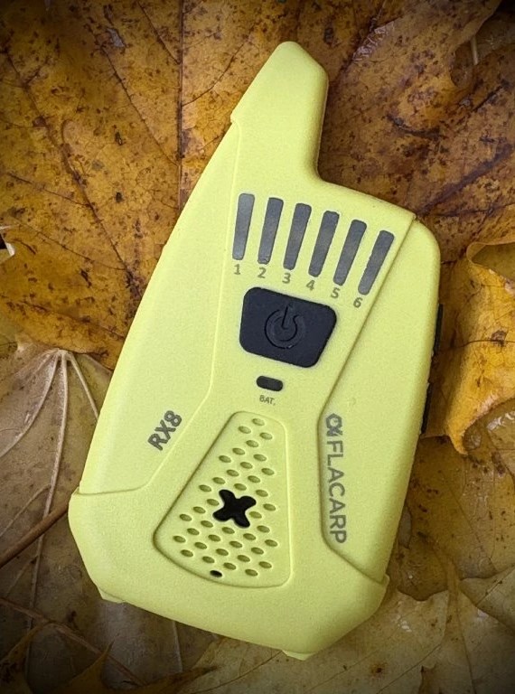 Bezdrátový příposlech FLACARP RX8 převzal od svého předchůdce RX7 skvělé parametry (velký dosah až 1km, 12 kanálů, možnost ovládání až 4 světel FLACARP) a přidává další užitečné funkce: díky funkci blokace alarmových čidel již nebudete poslouchat žádné zbytečné alarmy. Signál z čidel je potlačen při záběru nebo lze alarmy vypnout jedním stlačením tlačítka na příposlechu. Byla vylepšena také funkce upozornění při nežádoucím vypnutí signalizátoru záběru jednoznačným kolísavým tónem. Zcela přepracována byla funkce ukládání (učení) dalších signalizátorů a čidel – vše je nyní mnohem jednodušší.