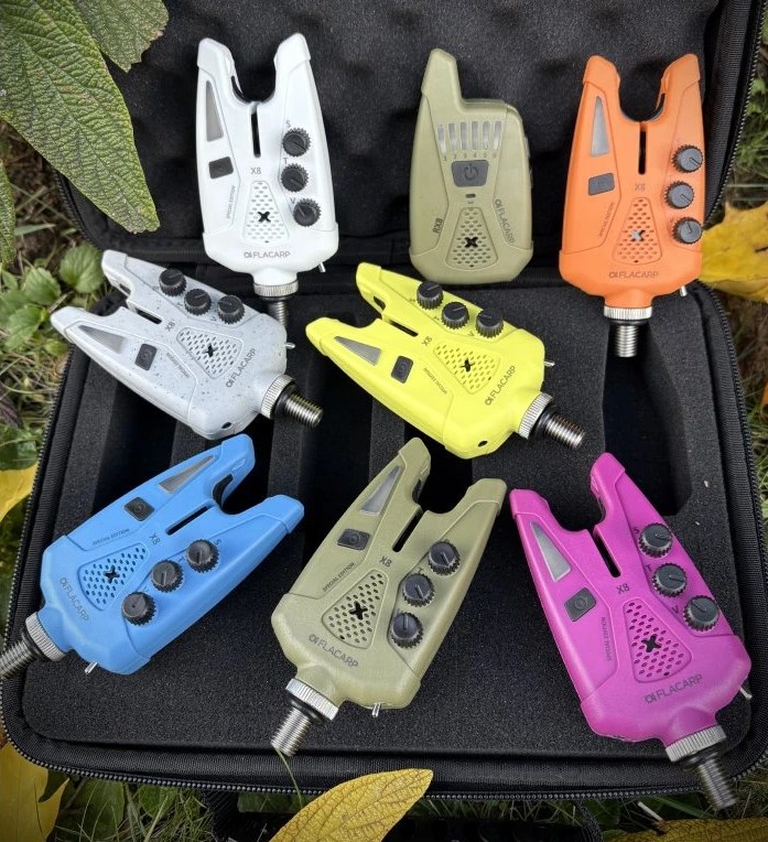 Limitovaná edice FLACARP X8 + RX8 spojuje špičkové české signalizátory záběru s bezdrátovým příposlechem RX8 do dokonale sladěné sady – nyní v osmi atraktivních barevných variantách: modrá, žlutá, oranžová, khaki, šedá, šedý granit, bílá a fialová.