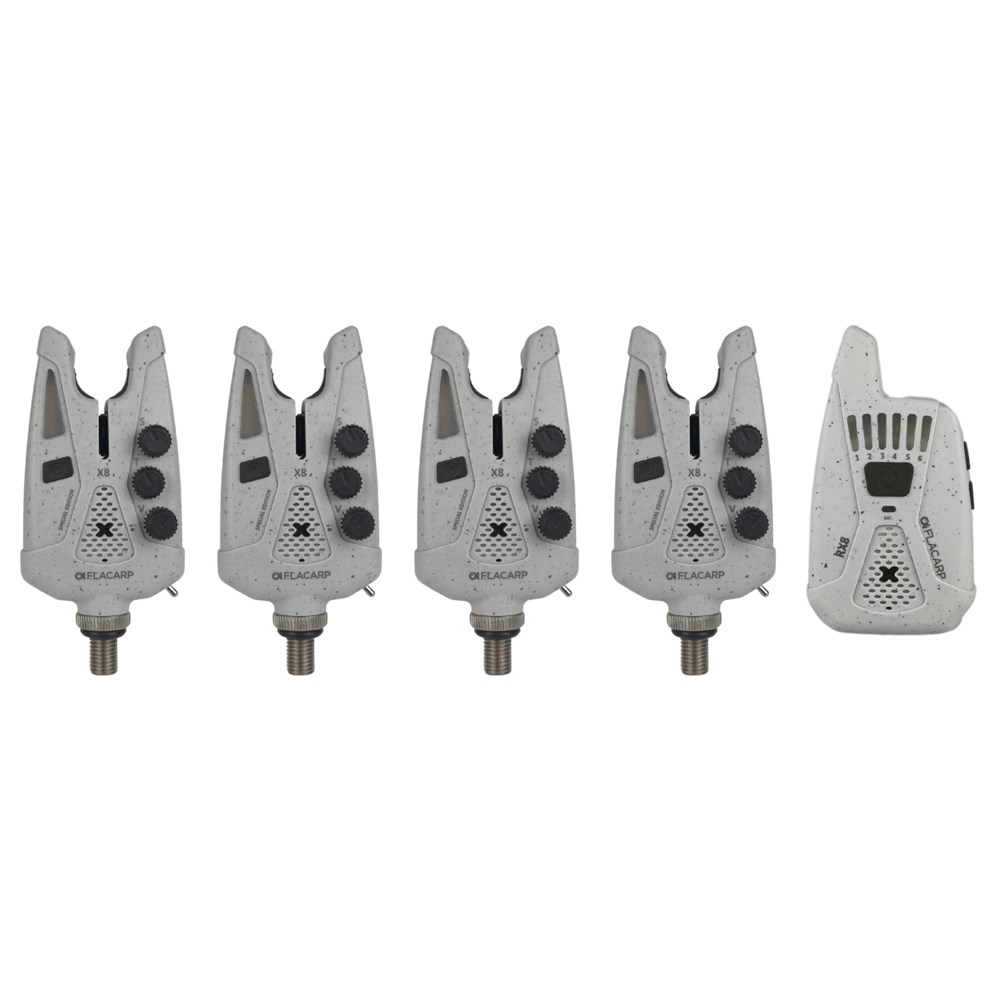 Limitovaná edice FLACARP X8 + RX8 spojuje špičkové české signalizátory záběru s bezdrátovým příposlechem RX8 do dokonale sladěné sady – nyní v jedenácti atraktivních barevných variantách: modrá, žlutá, oranžová, khaki, šedá, šedý granit, bílá a fialová.