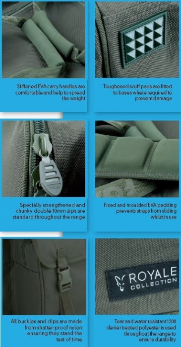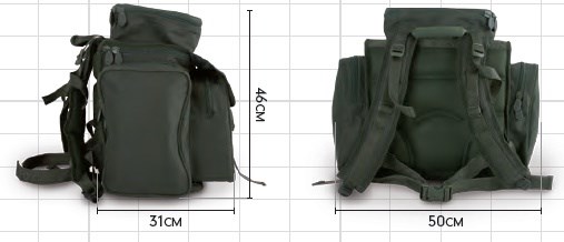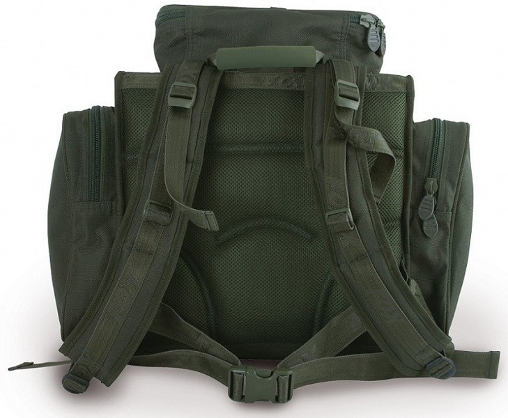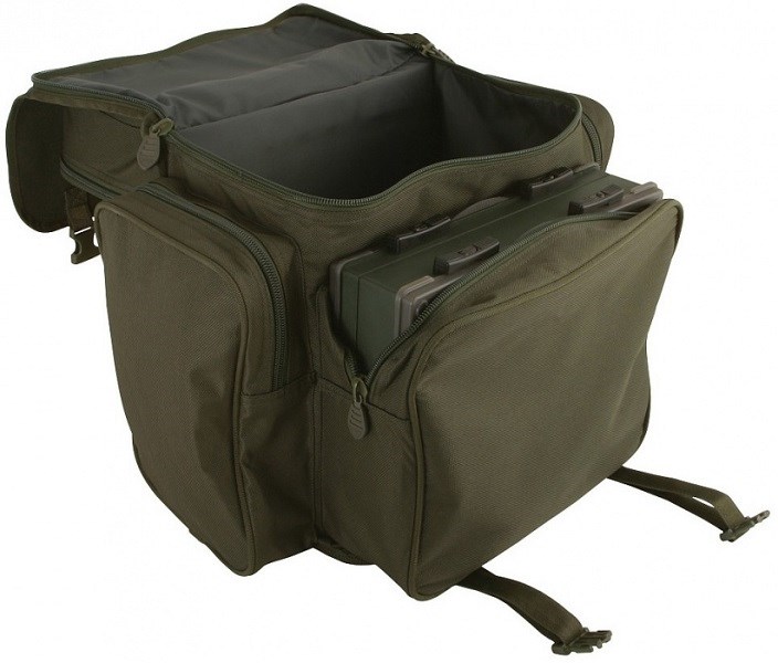 Batoh má 4 vnější kapsy z toho přední kapsa pojme velký double F. box, kapsa v horní části pojme střední F. box a dvě boční kapsy jsou určeny pro uložení pouzder na příslušenství a bižuterii.