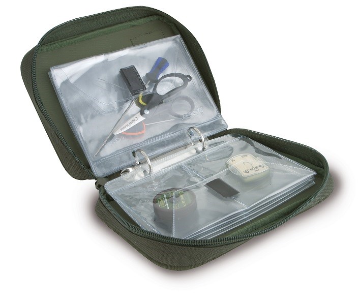 Přehledný obal na návazce od firmy Fox. Rozměry: 24(š) x 6(v) x 17,5(h) cm. Uvnitř 8x průhledná PVC kapsa na suchý zip (čtyři dvojité, čtyři jednoduché). Kroužková vazba pro snadné manipulování s kapsami. Materiál1200 Denier Polyester, 10mm kvalitní dvojité zipy.